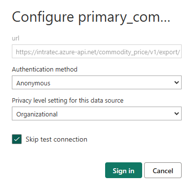 A pop-up will open to configure access to the Intratec APIs. Set it up as displayed below and click Sign in: