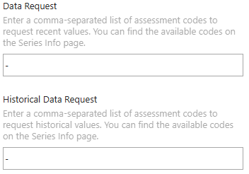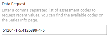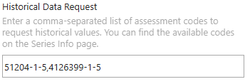 1. In the Historical Data Request parameter, enter a comma-separated list of assessment codes to retrieve the full history of values.