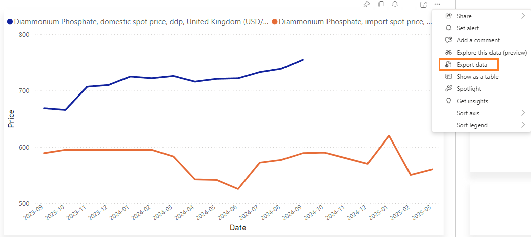 1. On the upper-right corner of the graph, click on the three dots and select Export data.