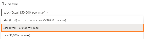 1. Under File format, select .xlsx (Excel 150,000-row max).