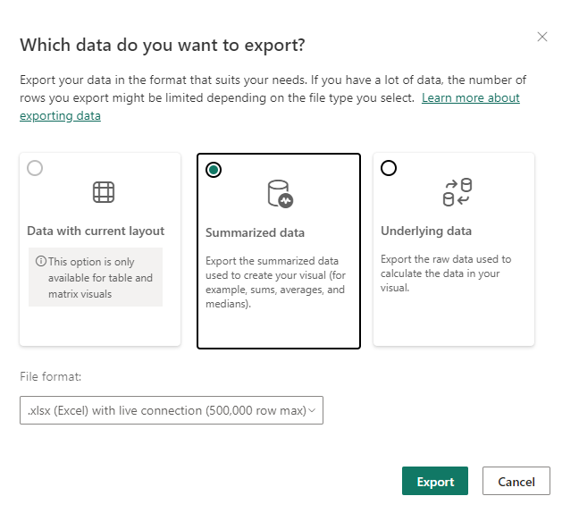 1. Then, select Summarized data to download only the information that appears on the chart.