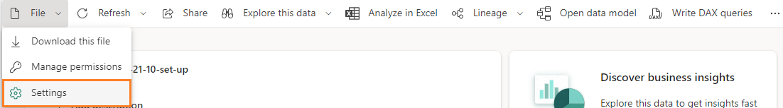 1. To configure the access, click on the three dots next to Edit on the top ribbon and select View semantic model.