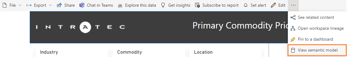 1. With the dashboard open in the browser, click on the three dots next to Edit on the top ribbon and select View semantic model.
